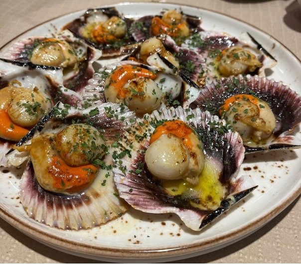 Dishes to Try: Raxo al Cabrales (marinated pork smothered in Asturian goat cheese) , Zamburiñas (scallops; pictured), Croquetas de Cecina (croquettes filled with bechamel and cured beef), Chipirones (squid; Fried or Grilled, both amazing), Tiramisu
